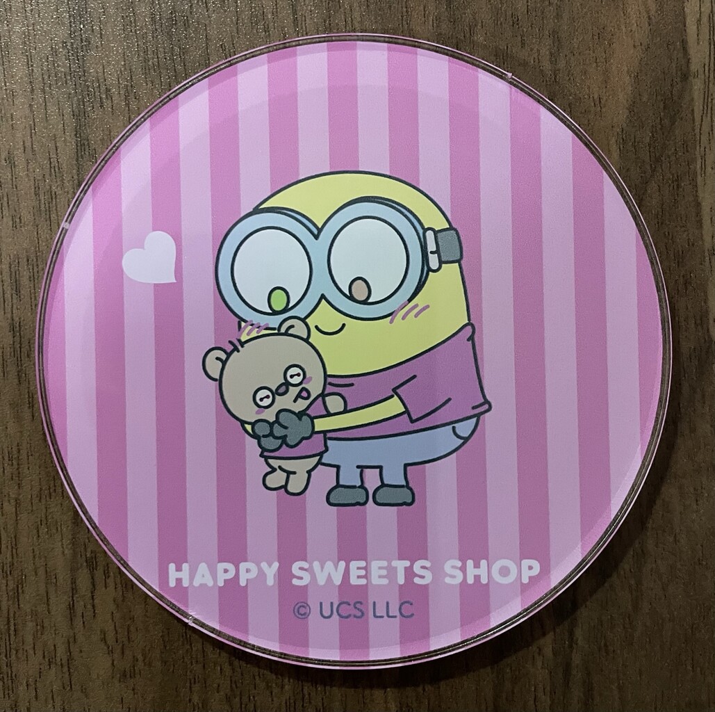 これは『MINIONS HAPPY SWEETS SHOP』で買ったアクリルコースターのボブ。おめあての絵柄じゃなかったけど、縁あってゲットできたので思い出になりますね。こういった実用的なグッズがもっと増えてほしいかなと思います。