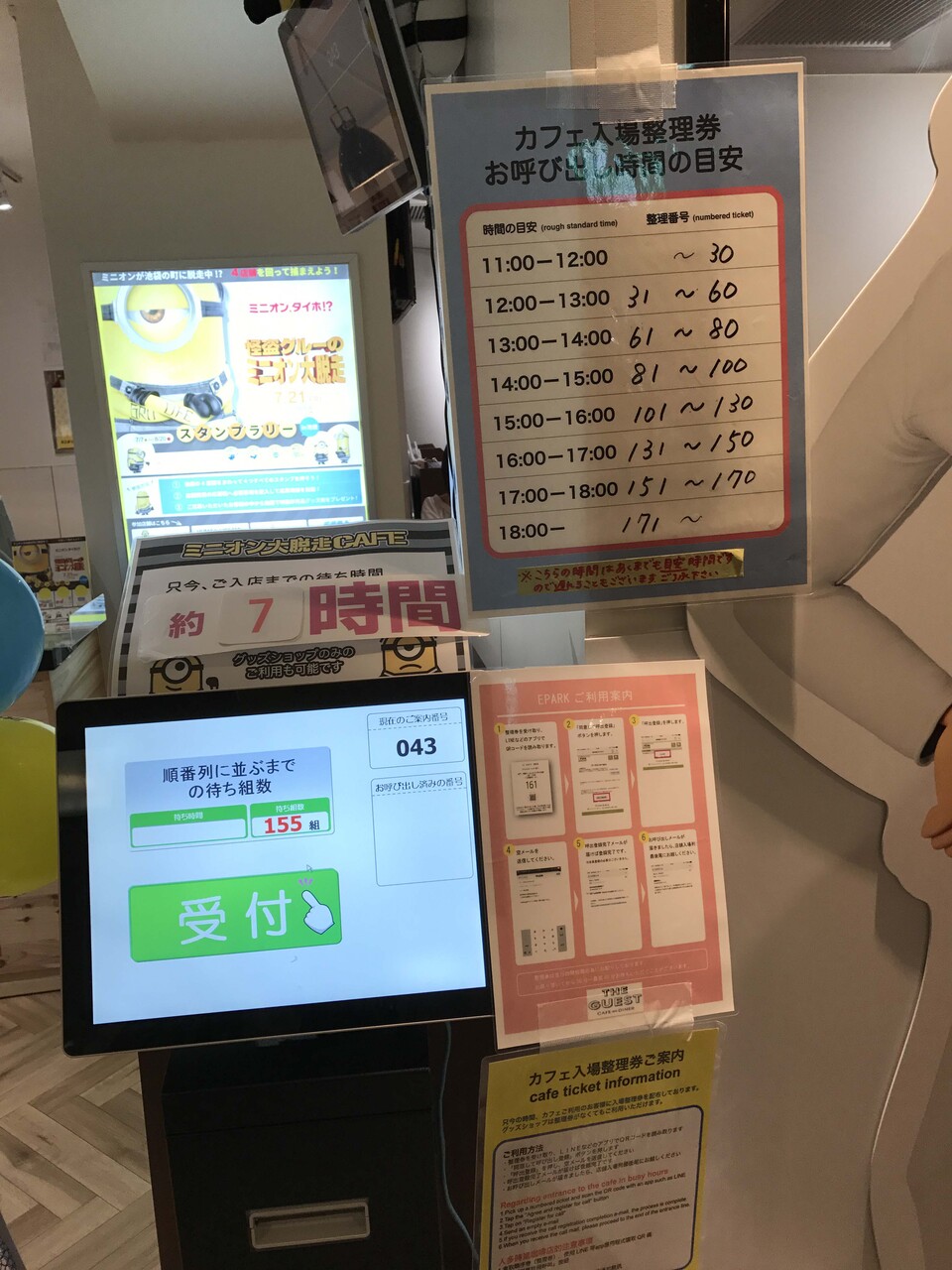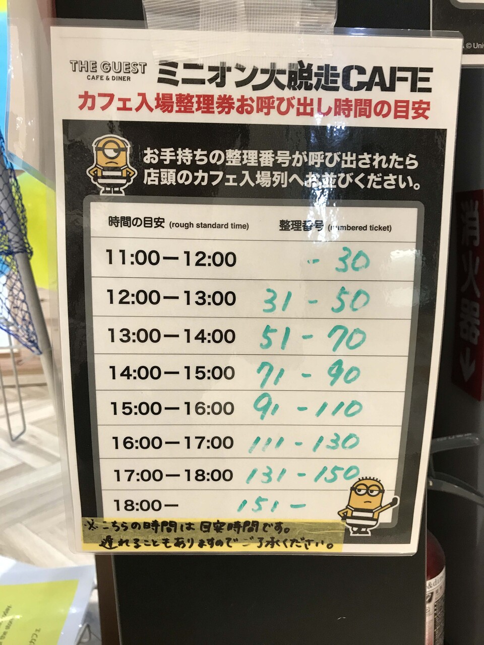 ミニオンサマーカフェやミニオンズフィーバーダイニングはここまですごい状態ではなかったんですが、わざわざ事前予約という方式を利用するお客さんは少ないんでしょうか。もしくはあえて並んでみたいということがしたいのか…。