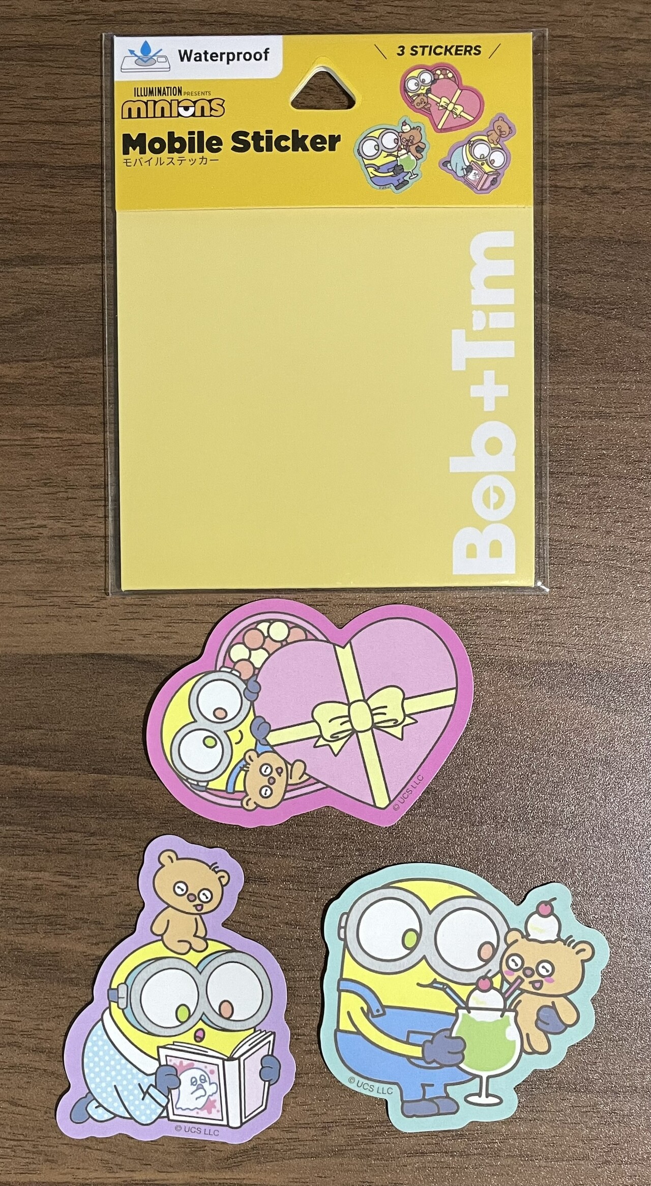 これはグッズショップで気になって買ったモバイルステッカー。ティムを頭にのせて寝転がって本を読んでるボブが可愛いかったので買っちゃいました。