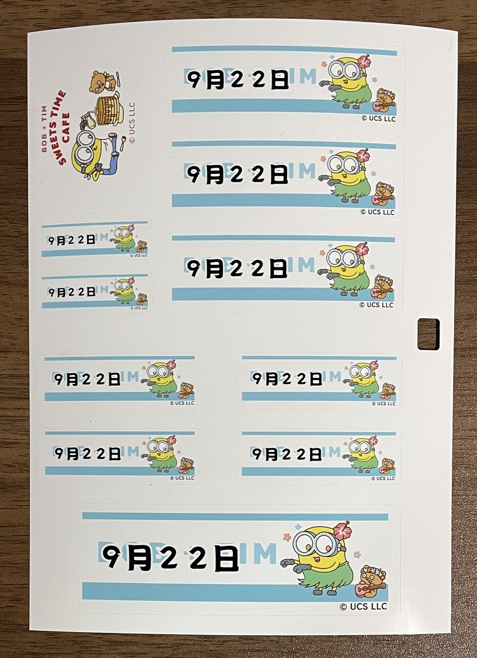これはグッズショップの奥にあった機械で出力したネームステッカー。他にもいろんな絵柄がありました。管理人はこのフラダンスしている絵柄が気に入ったので本日の日付を入れて記念に作りました。