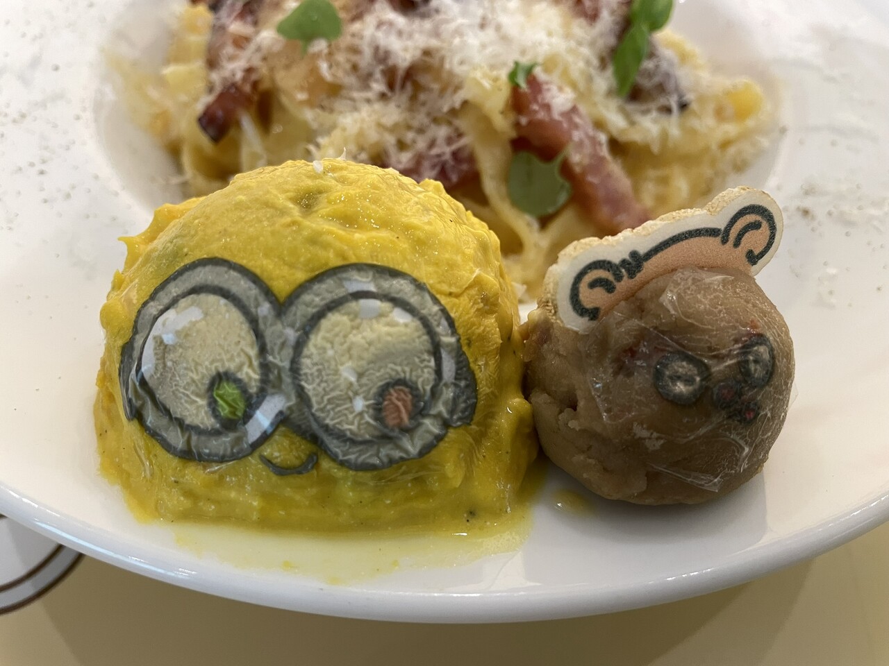 ボブ(パンプキンサラダ)とティム(マッシュポテト)が仲良く並んでいるのが可愛いです。