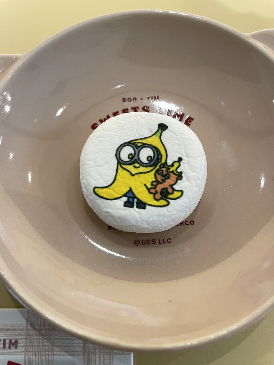 ドリンクは普通のコーヒーor紅茶ですが、マシュマロ目当てで注文しました。マシュマロがのっているお皿はグッズショップで売っているお皿です。お皿の絵柄はこんなです。