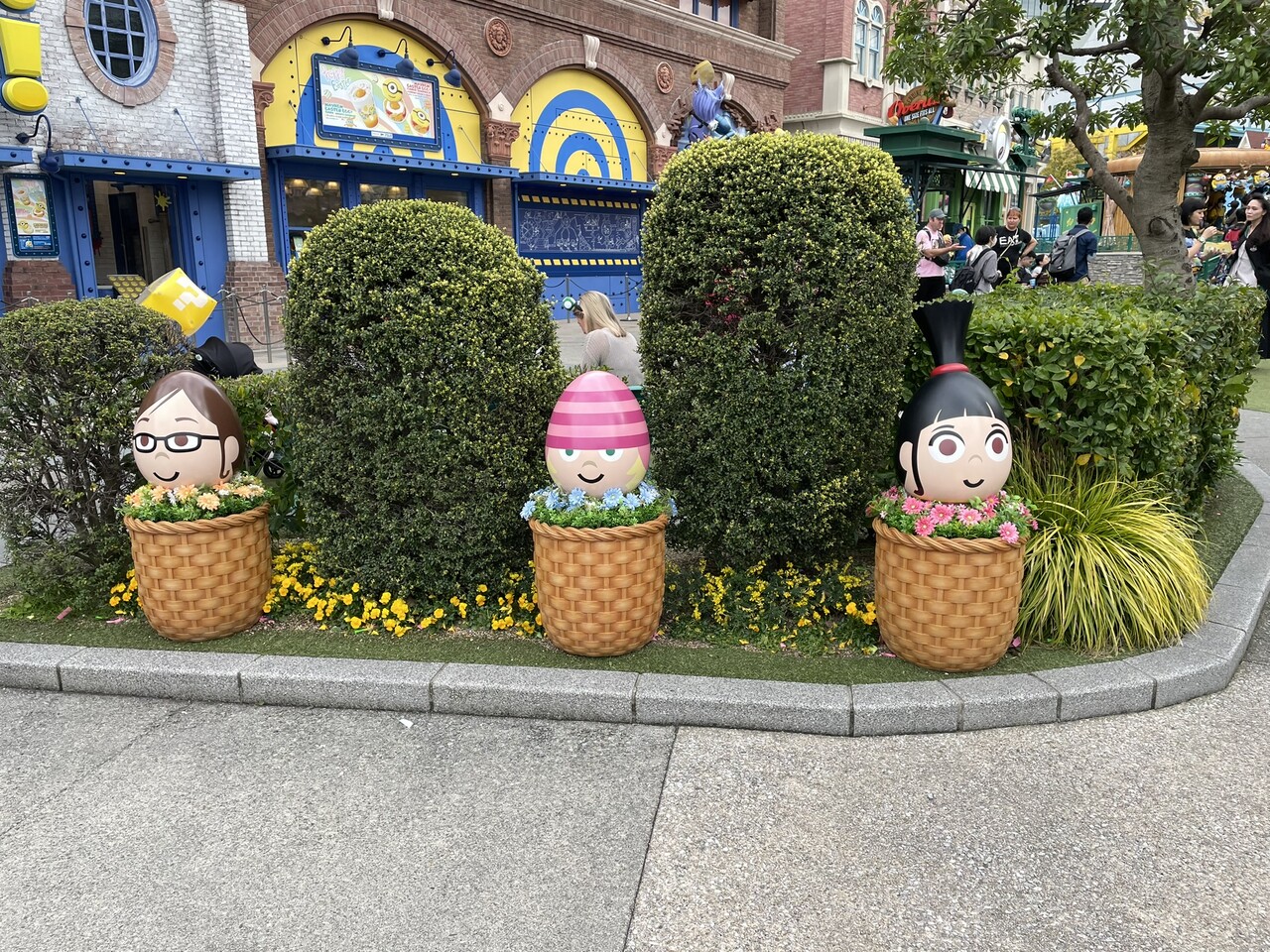 ミニオン・パークのあちこちにあるイースター仕様の飾りも見てて楽しかったです。