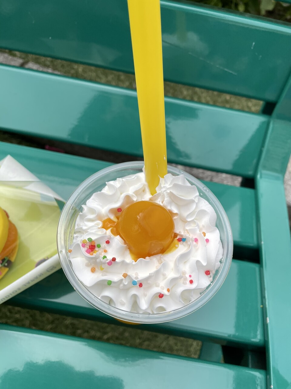 買ったフードとドリンクは近くの空いてるベンチでいただきました。