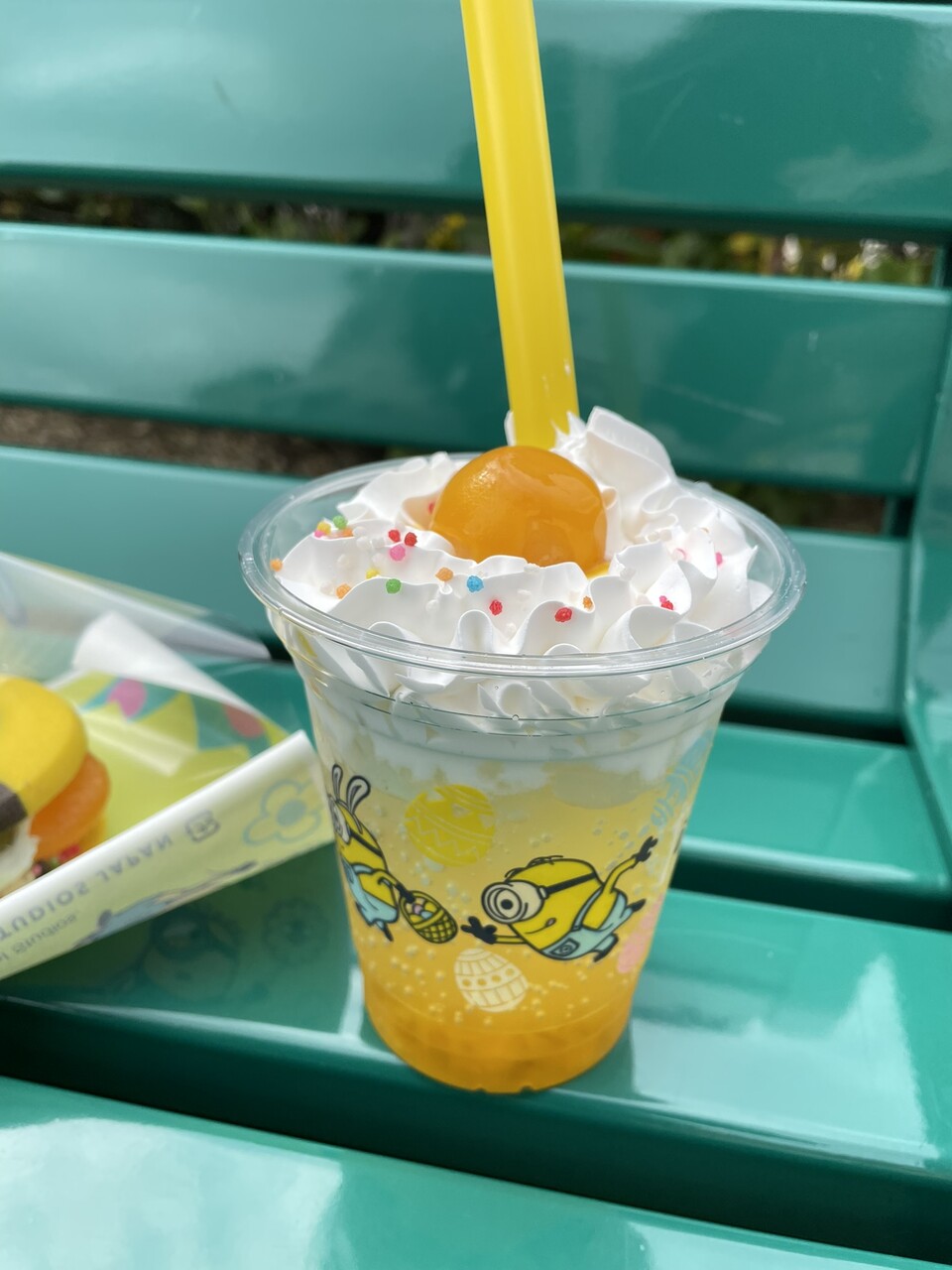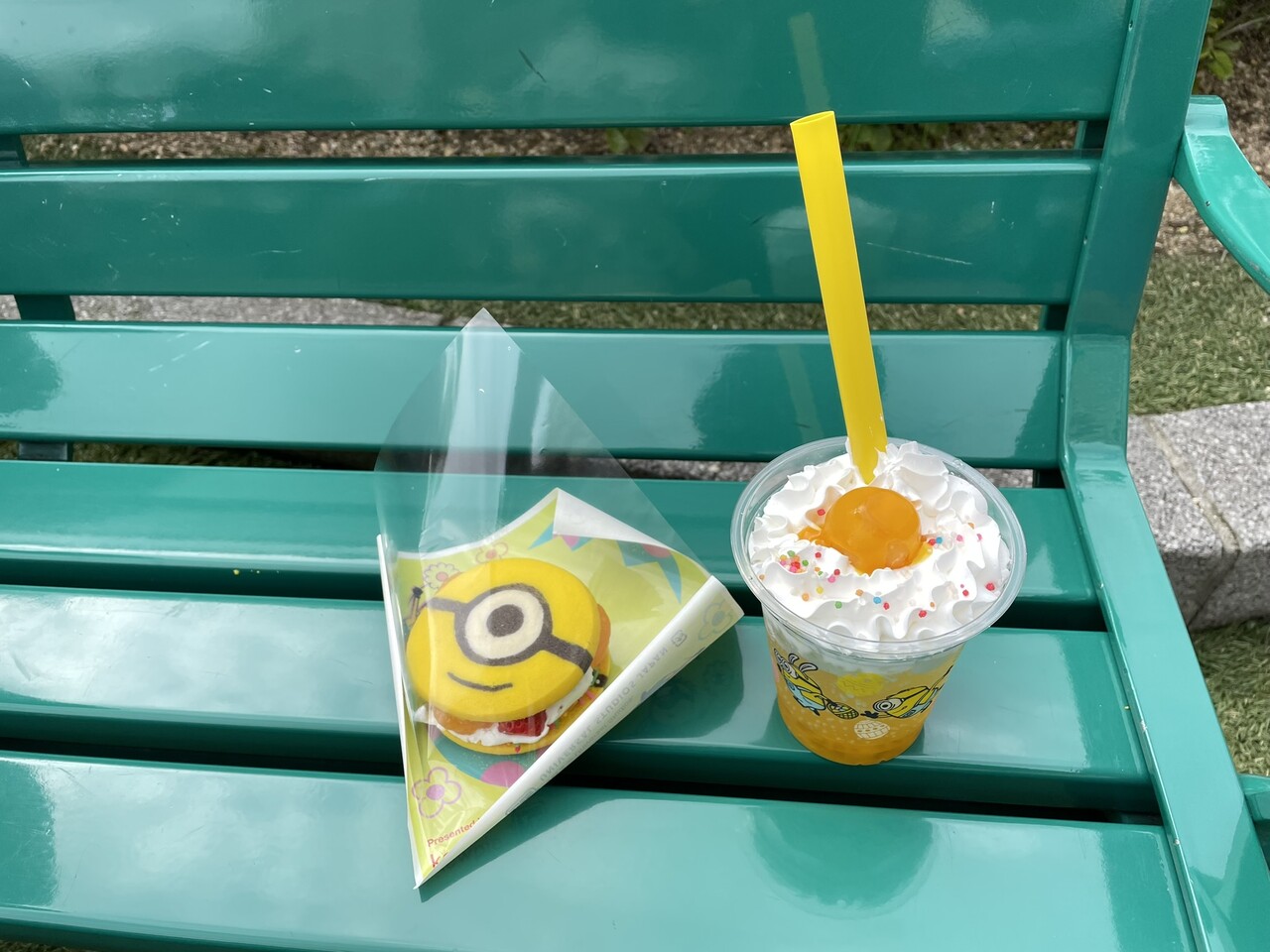 曇り空でしたが、暑くも日差しも強くないほどよい気候の中でミニオンスイーツをいただきました。