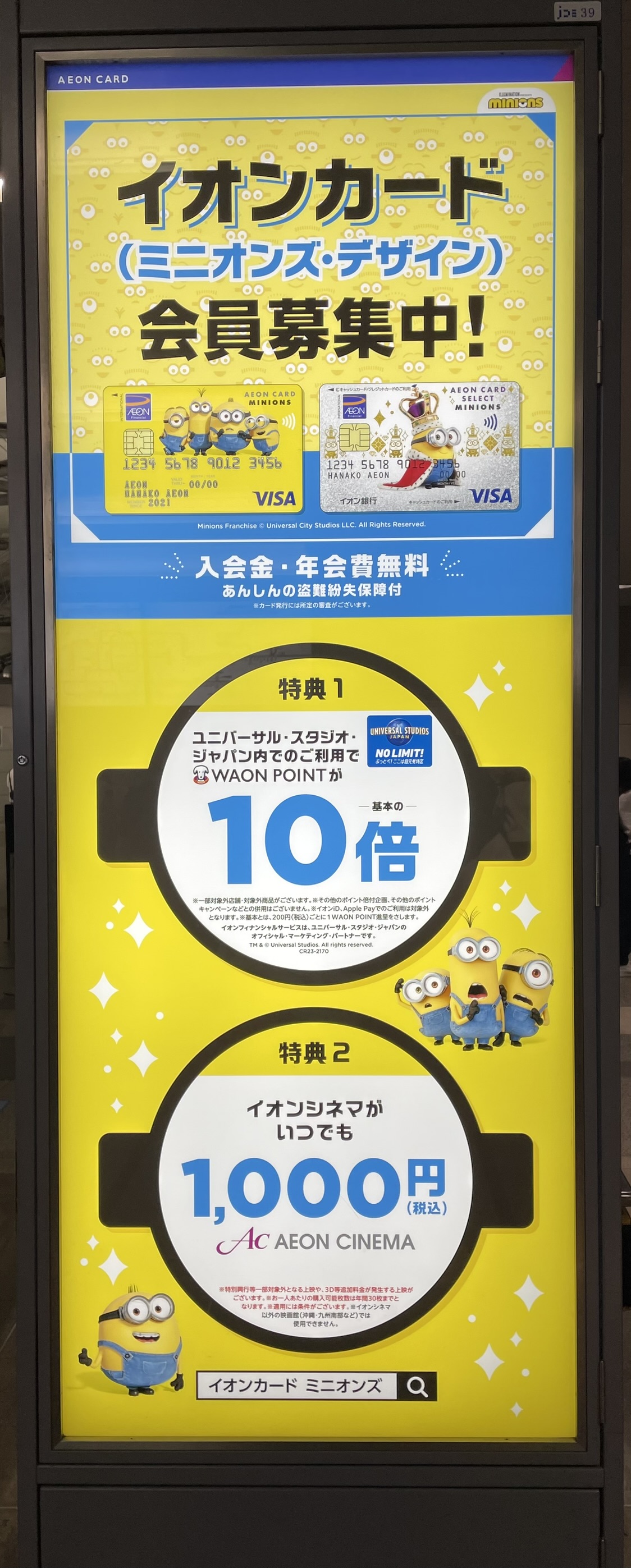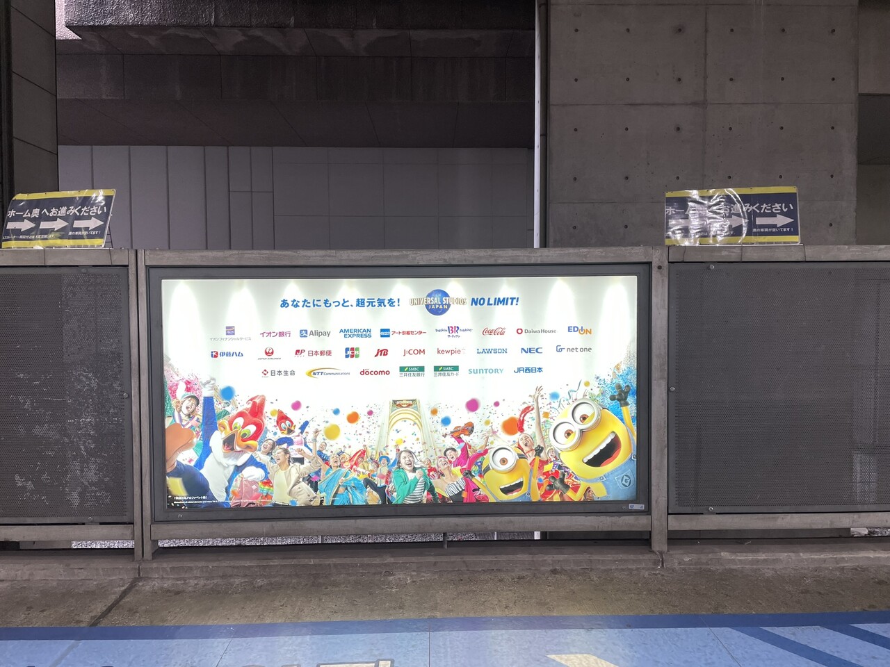 ユニバーサルシティ駅にもミニオン関連の広告がありました。これはイオンカードミニオンズ・デザインの広告看板です。