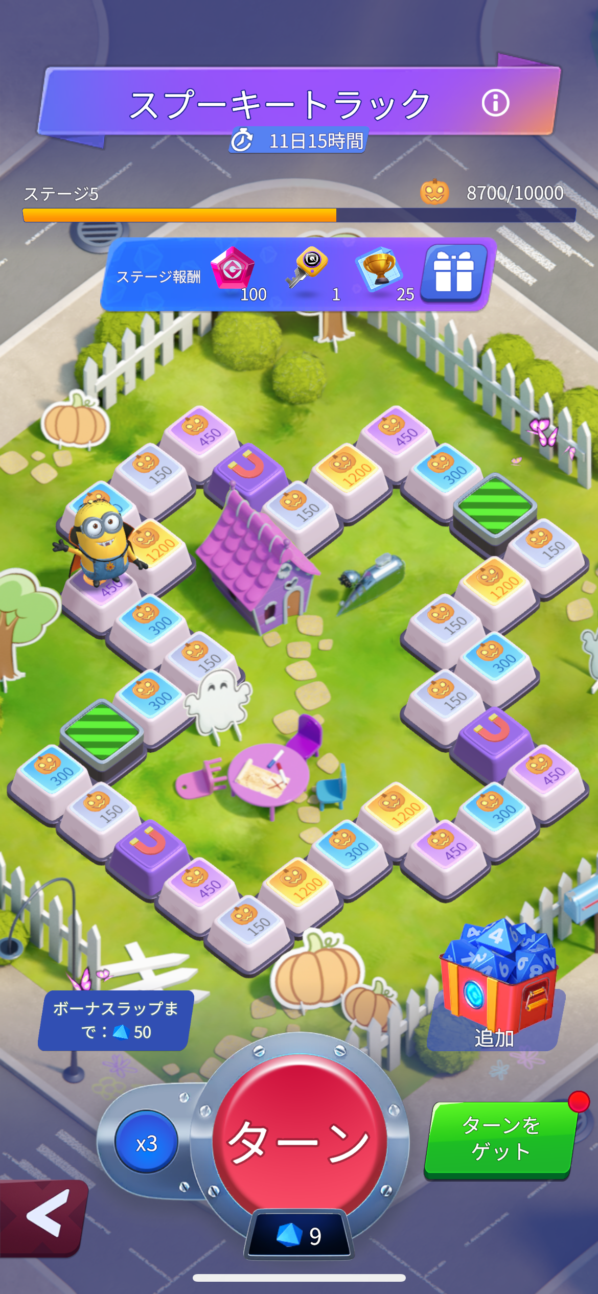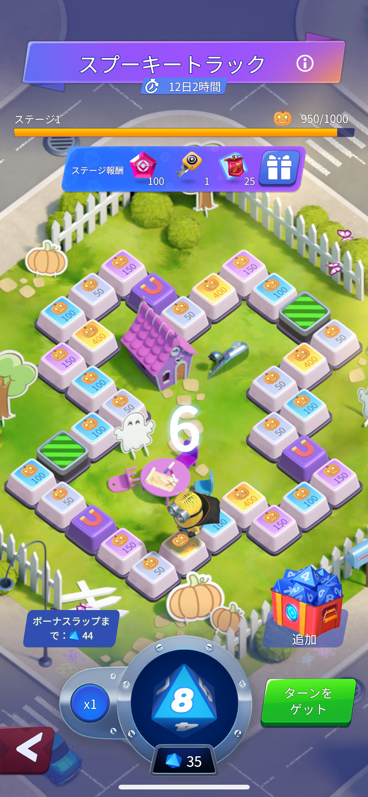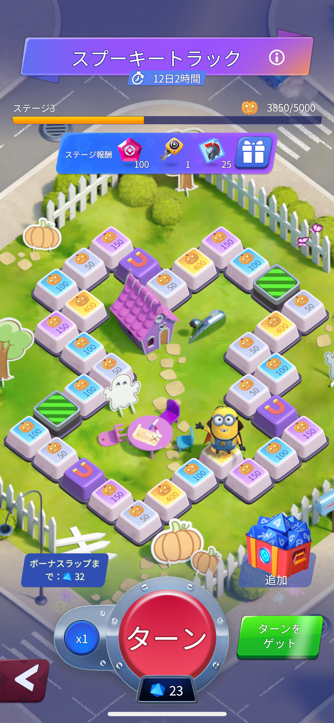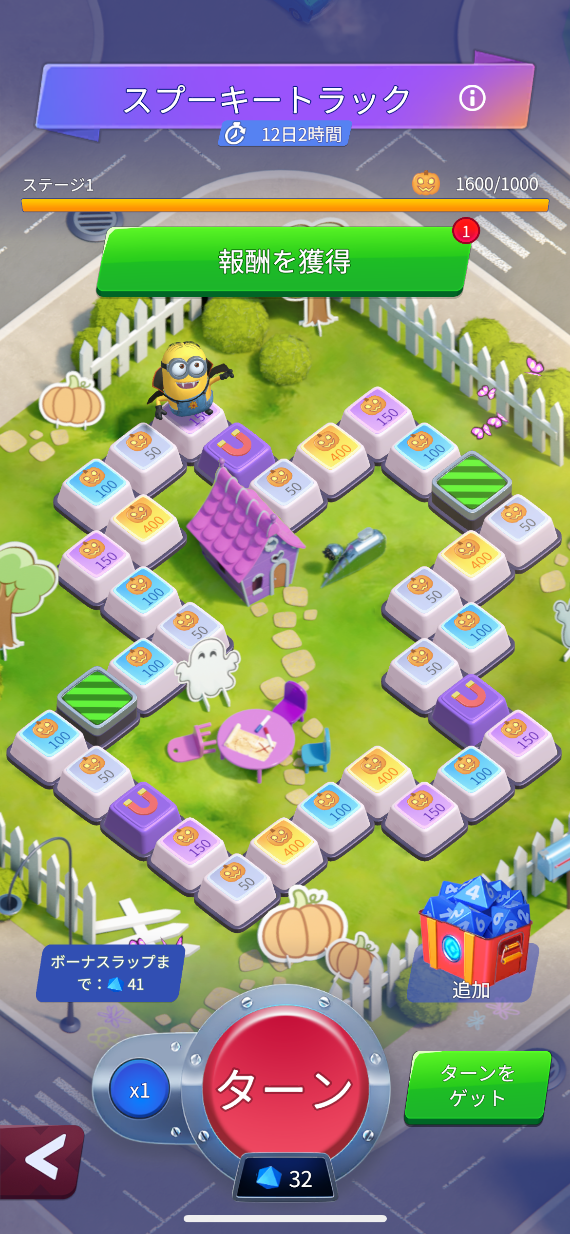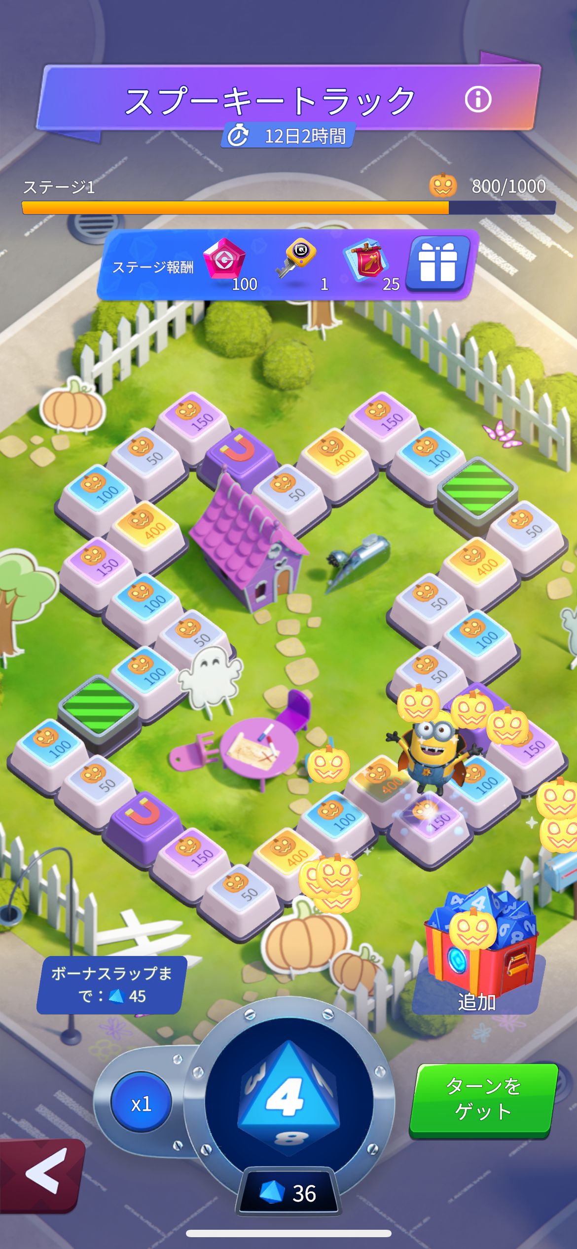 このコスチュームを手に入れるためには、「スプーキートラック」というすごろくみたいなものをひたすら遊んで、ポイントを稼いでレベルアップしなければなりません。