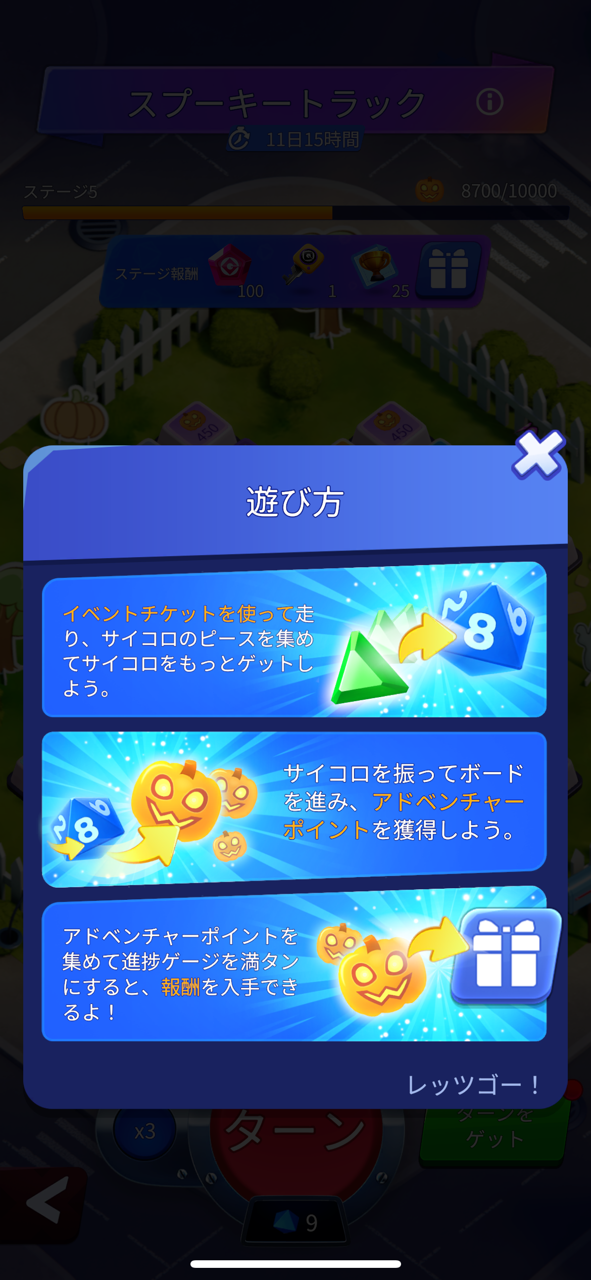 さらにサイコロのピースがあるコースはチケットがないと走れず、配布されるのを待つか、広告を見るかしないといけません。