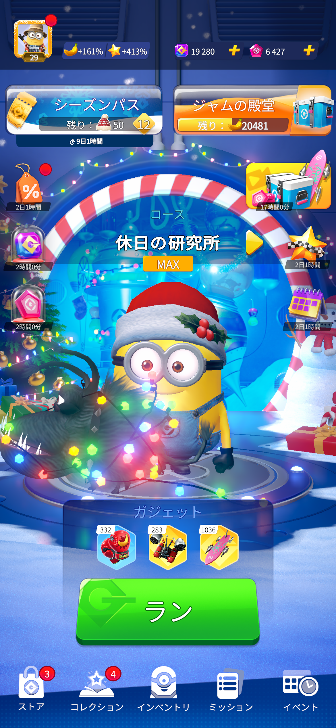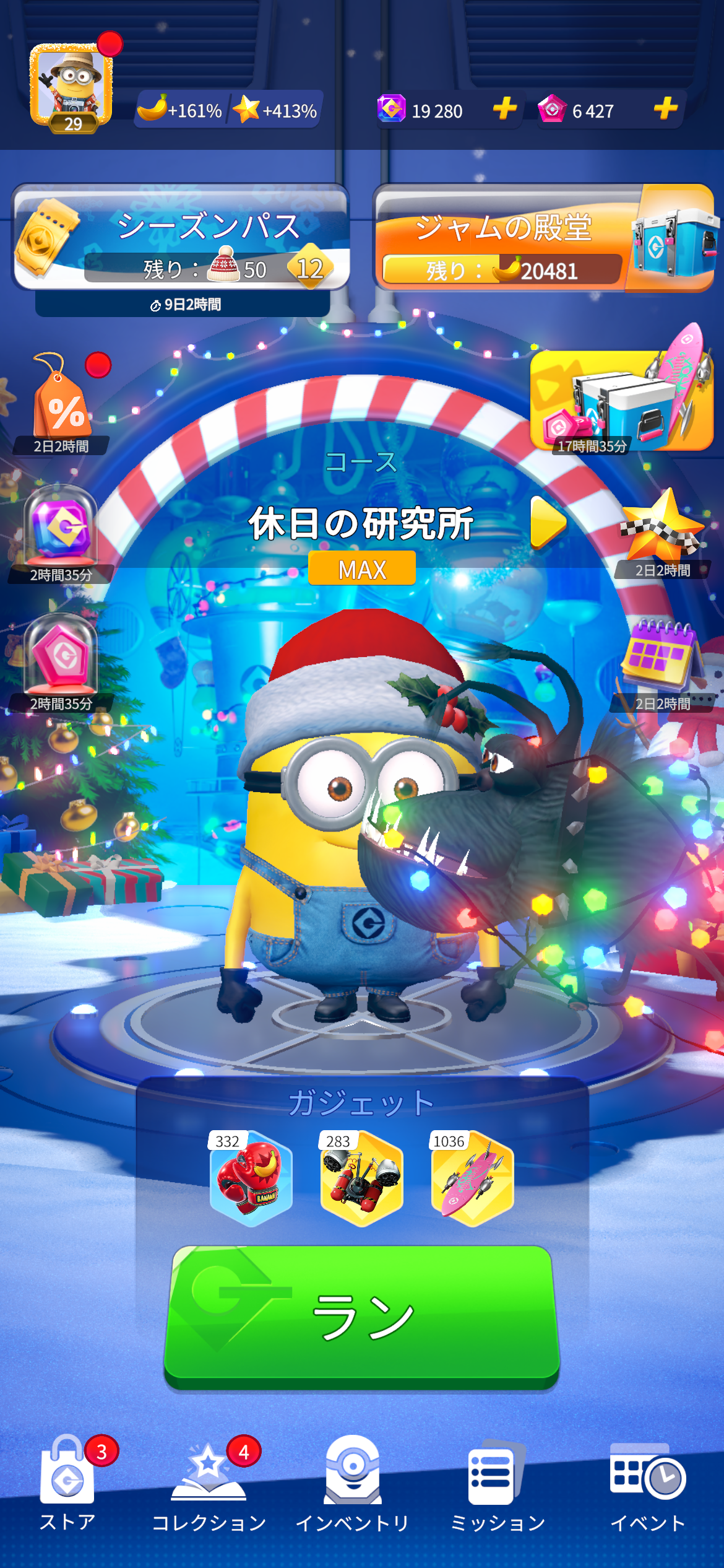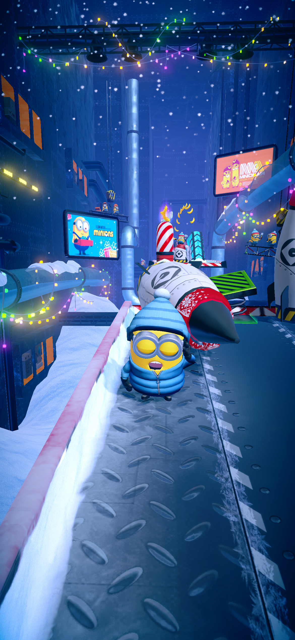 このシーズン中はグルーの研究所、起動直後のシーンもホリデー仕様になります。